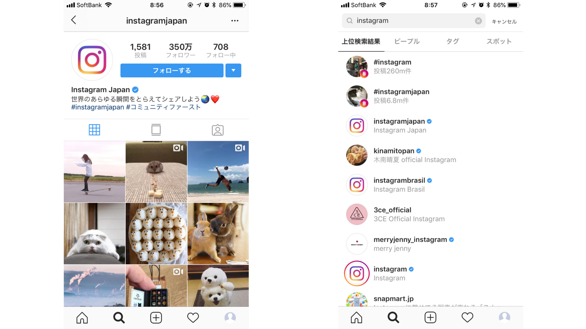 Instagram内の検索で上位、もしくは目につきやすい箇所に表示されるほか、優先的に新機能が利用できることもあります。