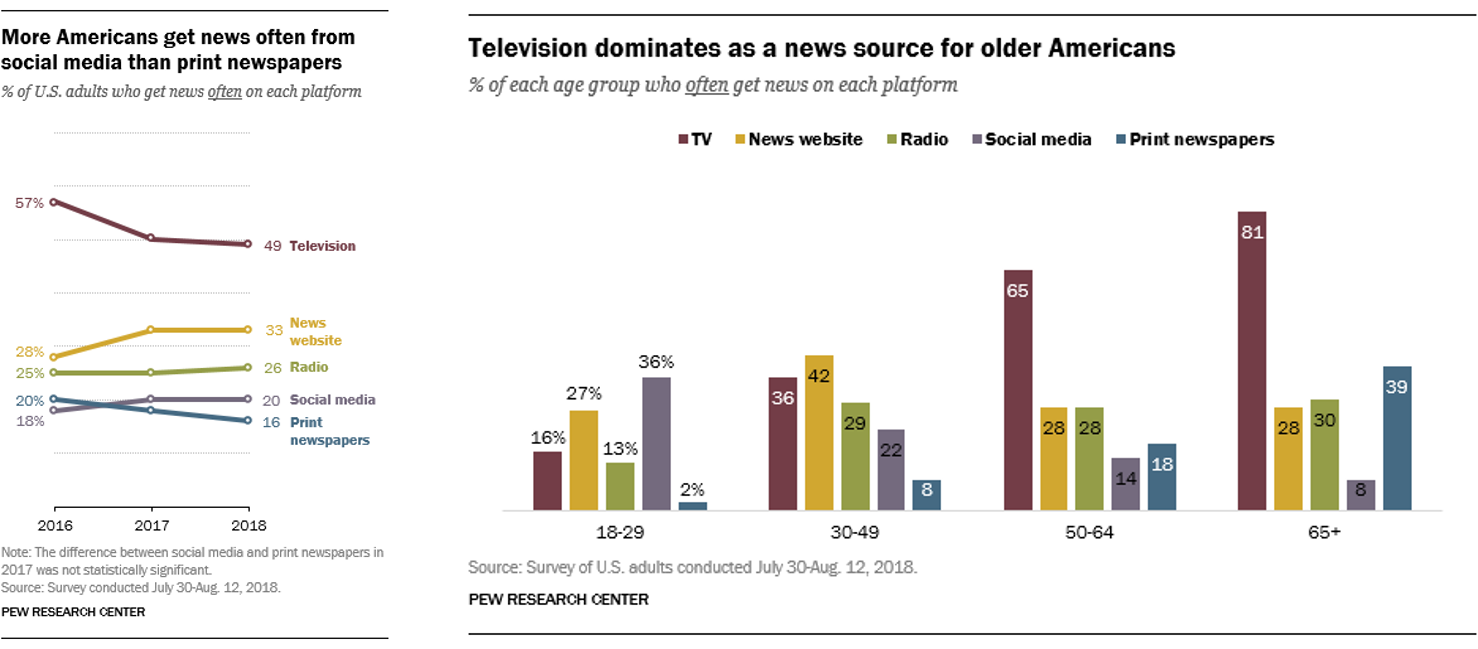 ■米国でニュースを知る手段、SNSが初めて新聞を上回る。